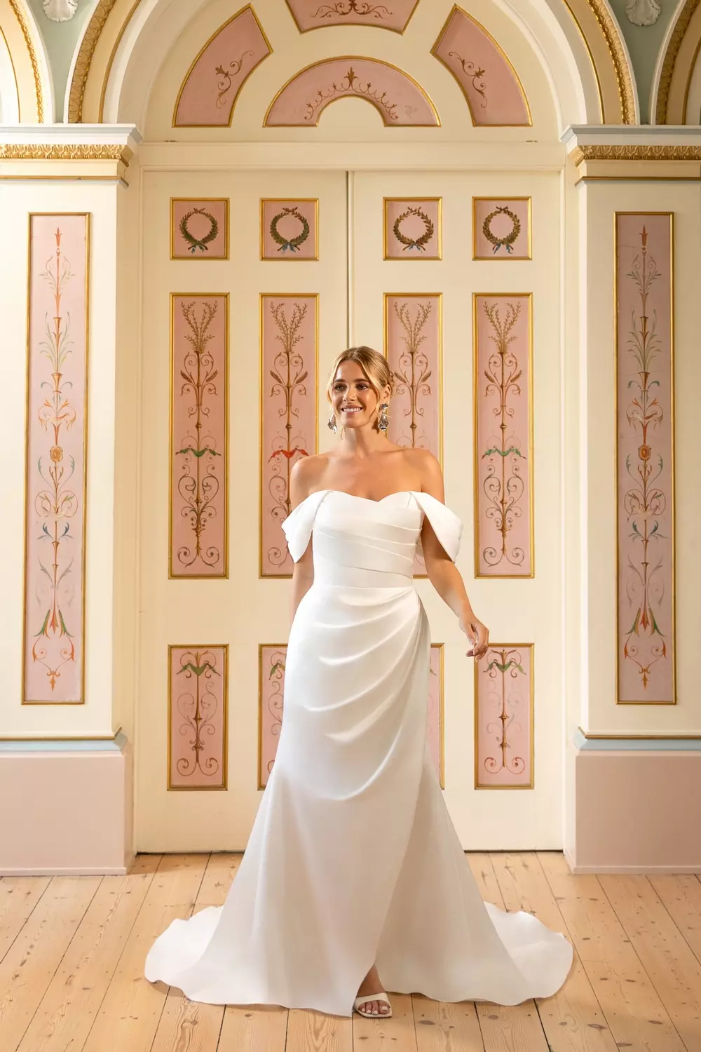 Inspired by the timeless appeal of old Hollywood glamour, this stunning satin style features a draped effect bodice that flows into a pleated wrap over skirt for a flash of leg. We have added soft drapes over the arm and let the rest of the dress do the talking as this gown is perfect for dressing up or down.