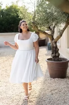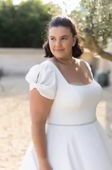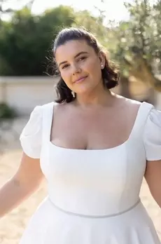 Finished with cleverly designed puff sleeves that meet in the centre creating a bow like effect, add one final personalisation with your choice of bodice shaping. Available with the option of a low scooped back as Mavis or a higher back bodice that perfectly matches the bra line as Mavis A, break from tradition with this one of a kind statement gown!